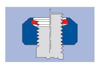 1、起自锁作用的锁紧环在自由状态时,向下呈一定角度。在预应力的作用下,弹性锁紧环向上抬升水平切向螺杆螺纹。锁紧环内圈的全螺纹,在螺杆 径向和轴向同时起到锁紧作用 –并  对螺杆螺纹周围产生全方位 (3600) 均匀的锁紧力矩。达到自锁效果,永不松动。