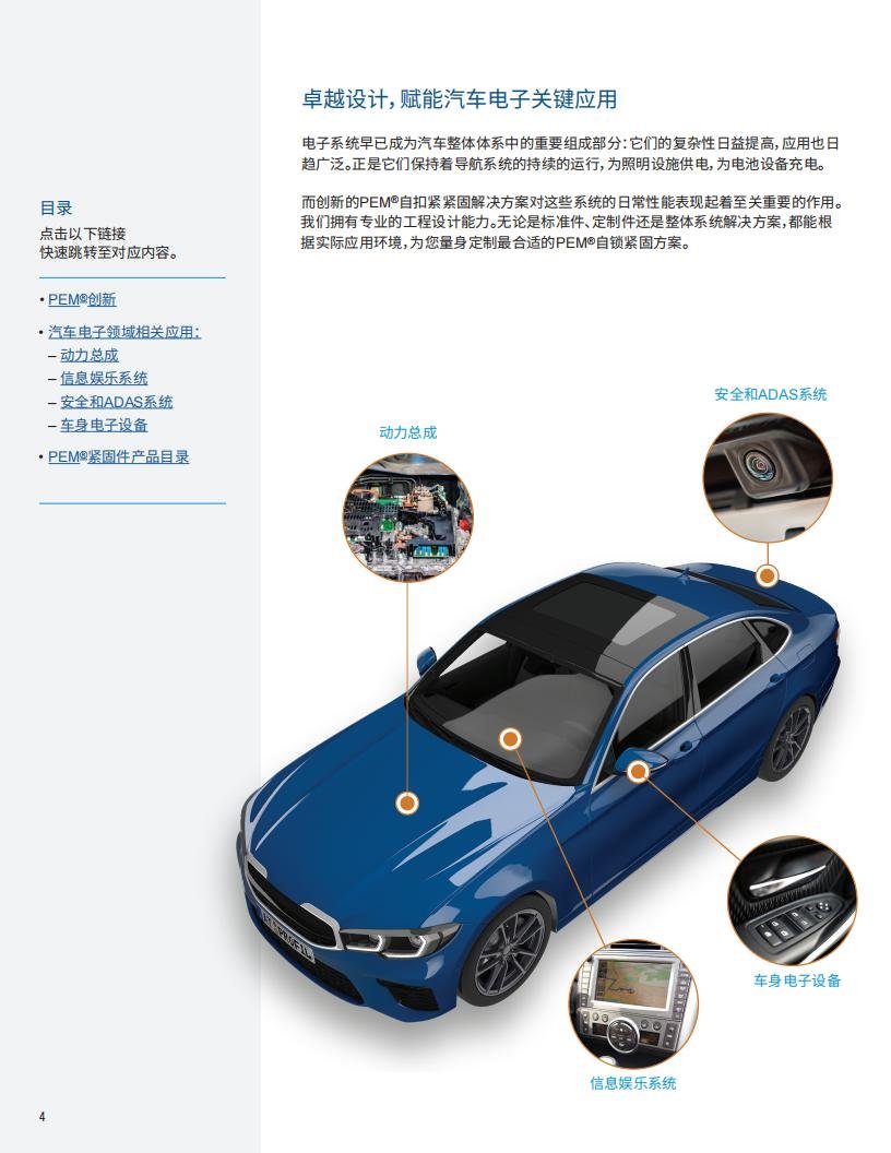 从安全气囊到信息娱乐系统,从母排到电池应用– PEM®和microPEM® 自扣紧紧固件 广泛应用于各种汽车电子系统中。