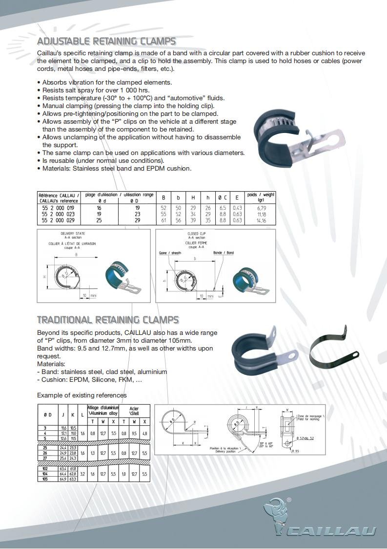 Beyond its specific products, CAILLAU also has a wide range  of “P” clips, from diameter 3mm to diameter 105mm.