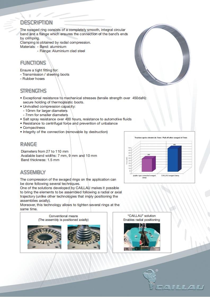 The swaged ring consists of a completely smooth, integral circular band and a flange which ensures the connection of the band’s ends by crimping.