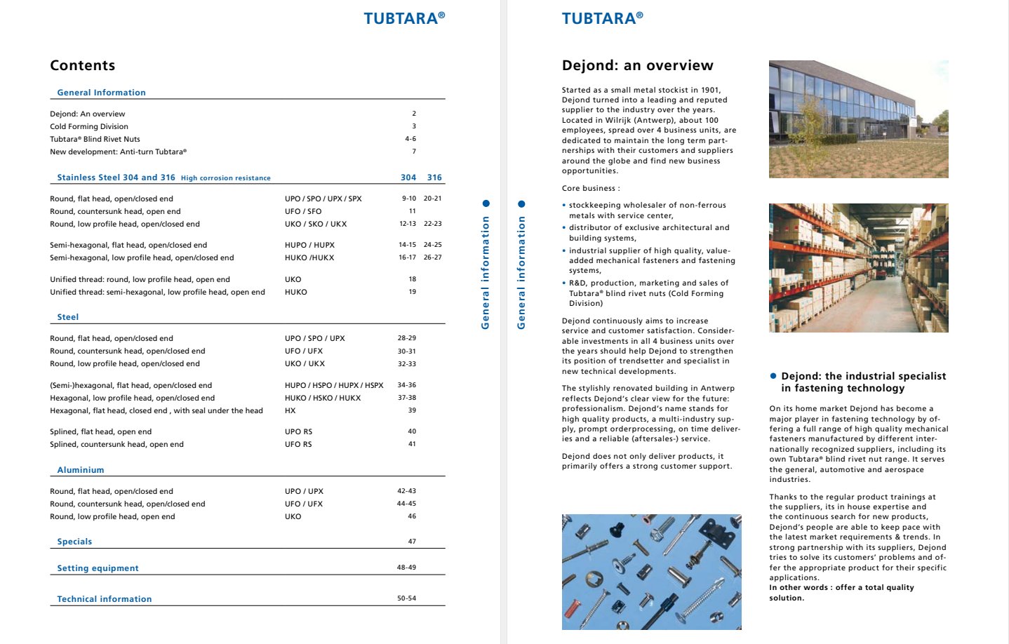 mechanical fasteners manufactured by different inter- nationally recognized suppliers, including its  own Tubtara®  blind rivet nut range.